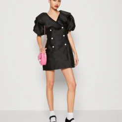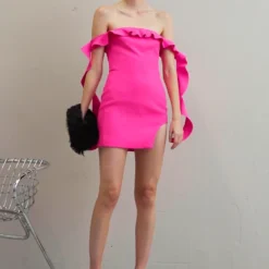 RUFFLE TOP& SIDE DETAIL ARCH LEG CUTOUT MINI DRESS – Cocktailkleid/festliches Kleid – Neon Pink