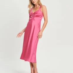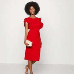 DKNY RUFFLE SLV V-NECK DRESS – Cocktailkleid/festliches Kleid – Sunkist Coral/spring Navy