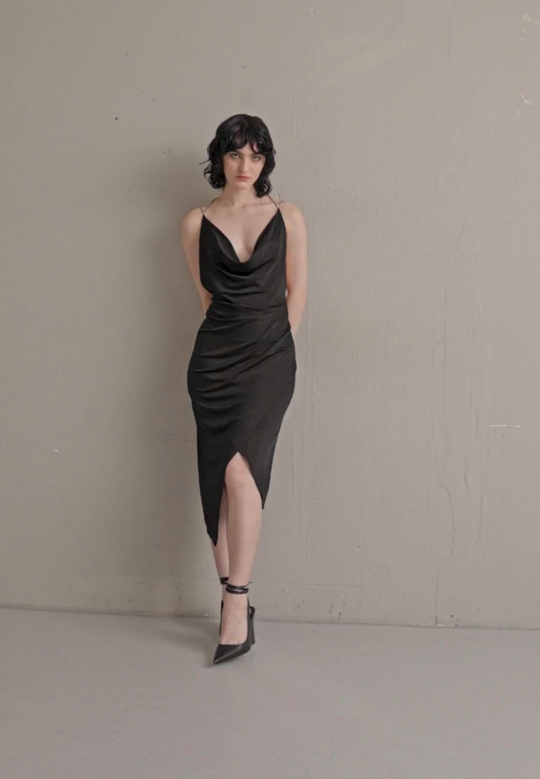 ILA CHAIN COWL NECK MIDI DRESS – Cocktailkleid/festliches Kleid – Black